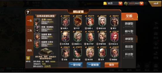 E.部队等级由主角等级决定,弹药消耗和初始战力随部队等级变化,部队总战力是由“主帅-先锋-左副将-右副将”加成之后的战力,也是行动部队的出战战力。